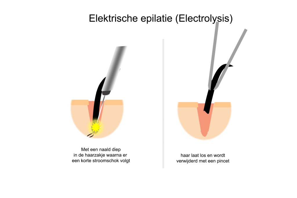 Het principe is heel eenvoudig: er wordt een heel fijne draad – zo fijn als het haartje – in het haarzakje ingebracht. Vervolgens krijgt het haarzakje een stroomstootje om het definitief te vernietigen.